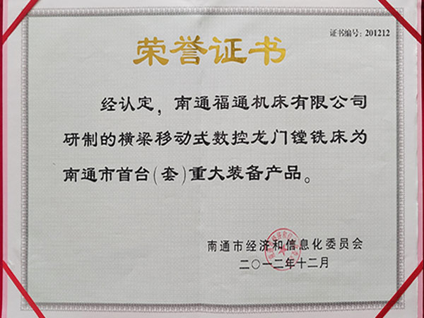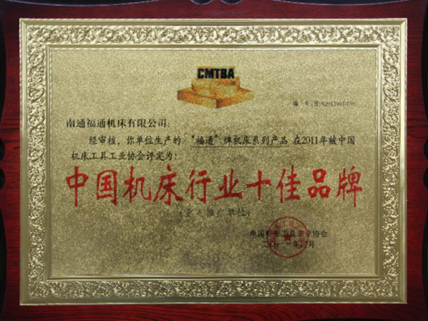 公司通過ISO9001:2015質(zhì)量體管理系認(rèn)證、ISO14001:2015環(huán)境管理體系認(rèn)證、ISO45001:2018職業(yè)健康安全管理體系認(rèn)證、先后榮獲:中國機(jī)床行業(yè)十佳品牌、江蘇名牌產(chǎn)品、江蘇省質(zhì)量信得過企業(yè)、南通市科學(xué)技術(shù)進(jìn)步獎、南通市AAA級重合作守信用企業(yè)、高新技術(shù)企業(yè)、南通市首臺(套)重大裝備產(chǎn)品等榮譽(yù)。